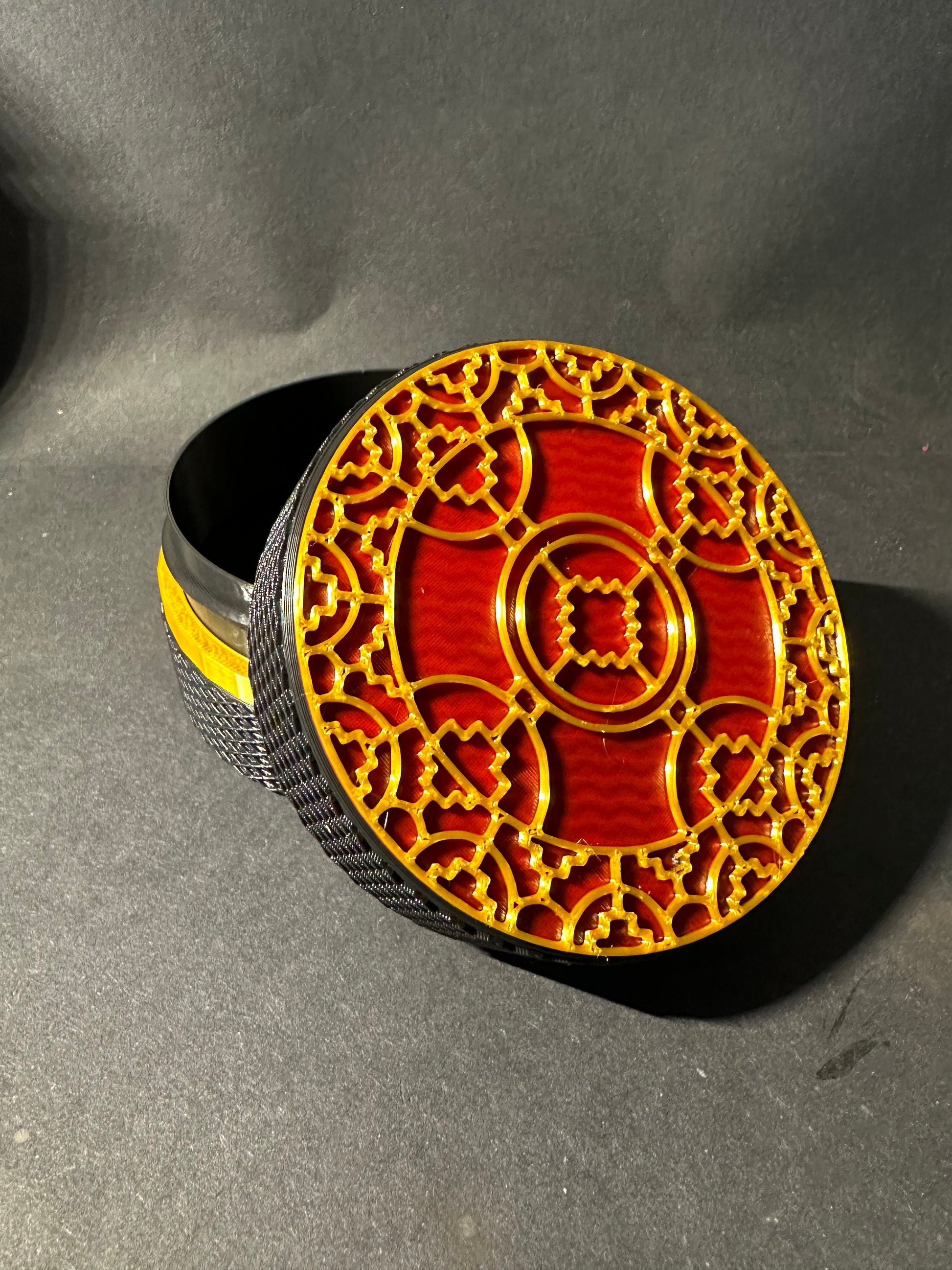 Anglo Saxon Coin Case with a new criss-cross edging to maintain a good grip. Finished in a deep red and gold.