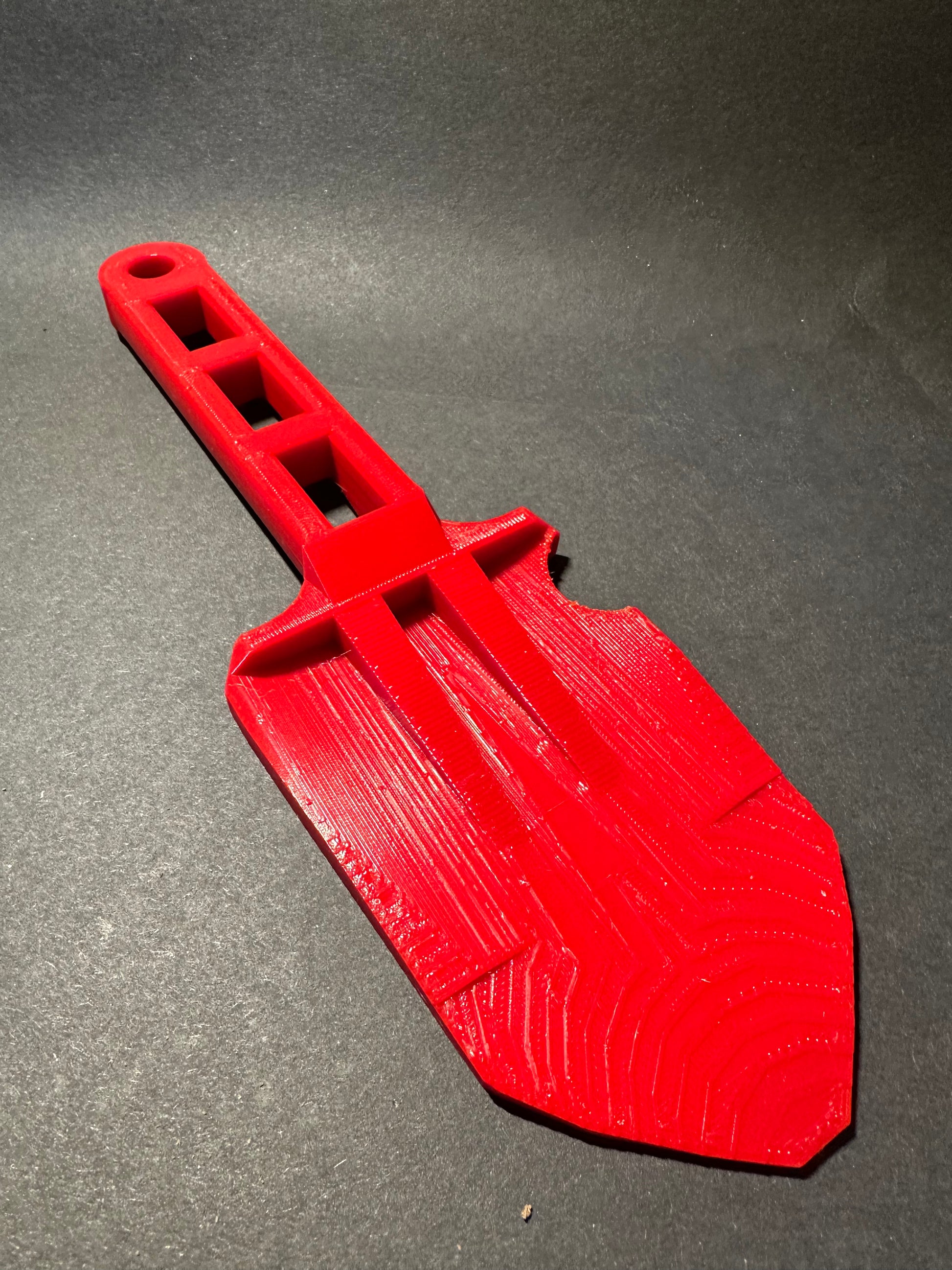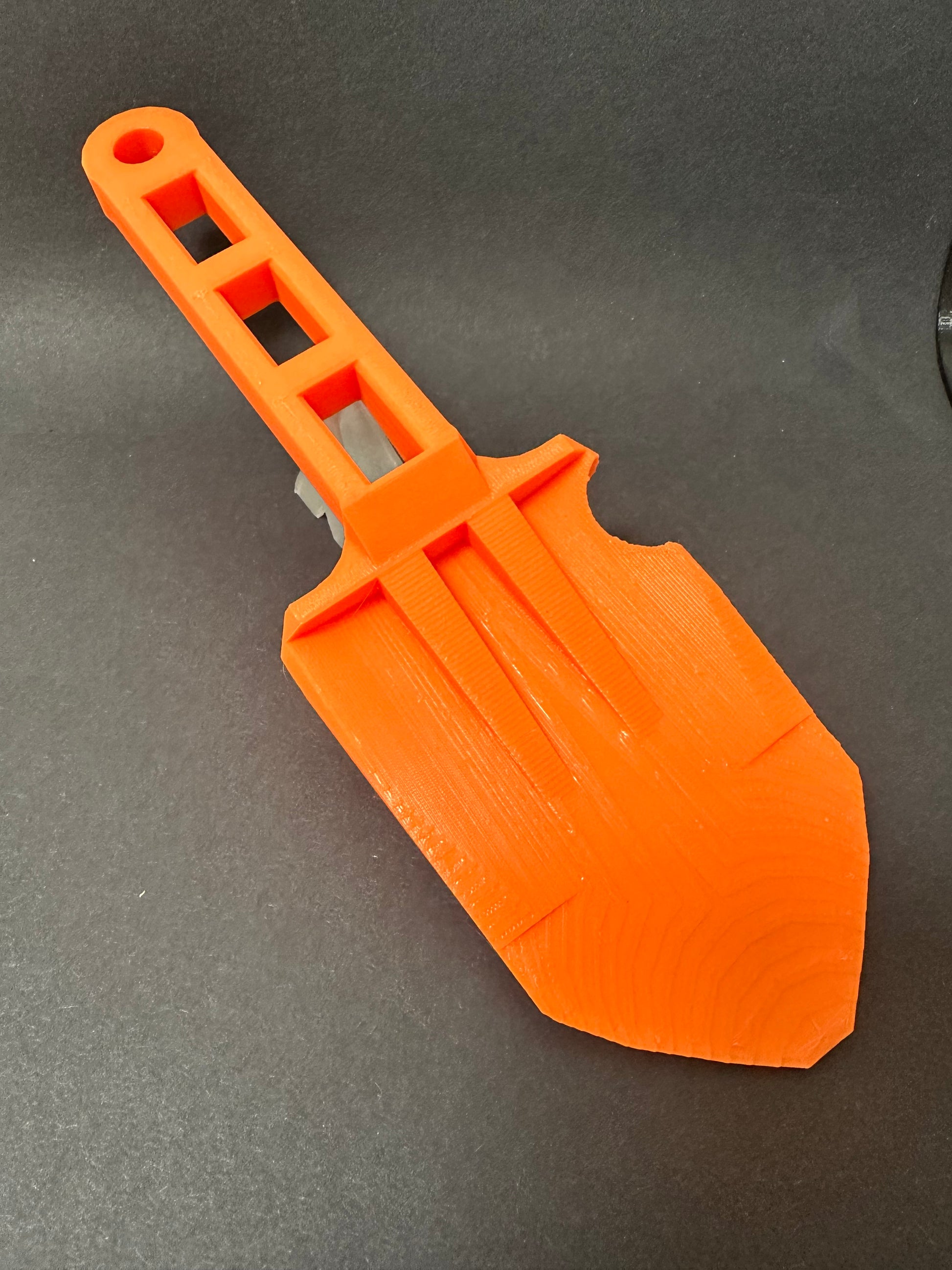 This trowel is made purely from plastic. This means it will not interfere with your detector or pin pointer. It is also less likely to damage your finds/coins when digging out a hole.