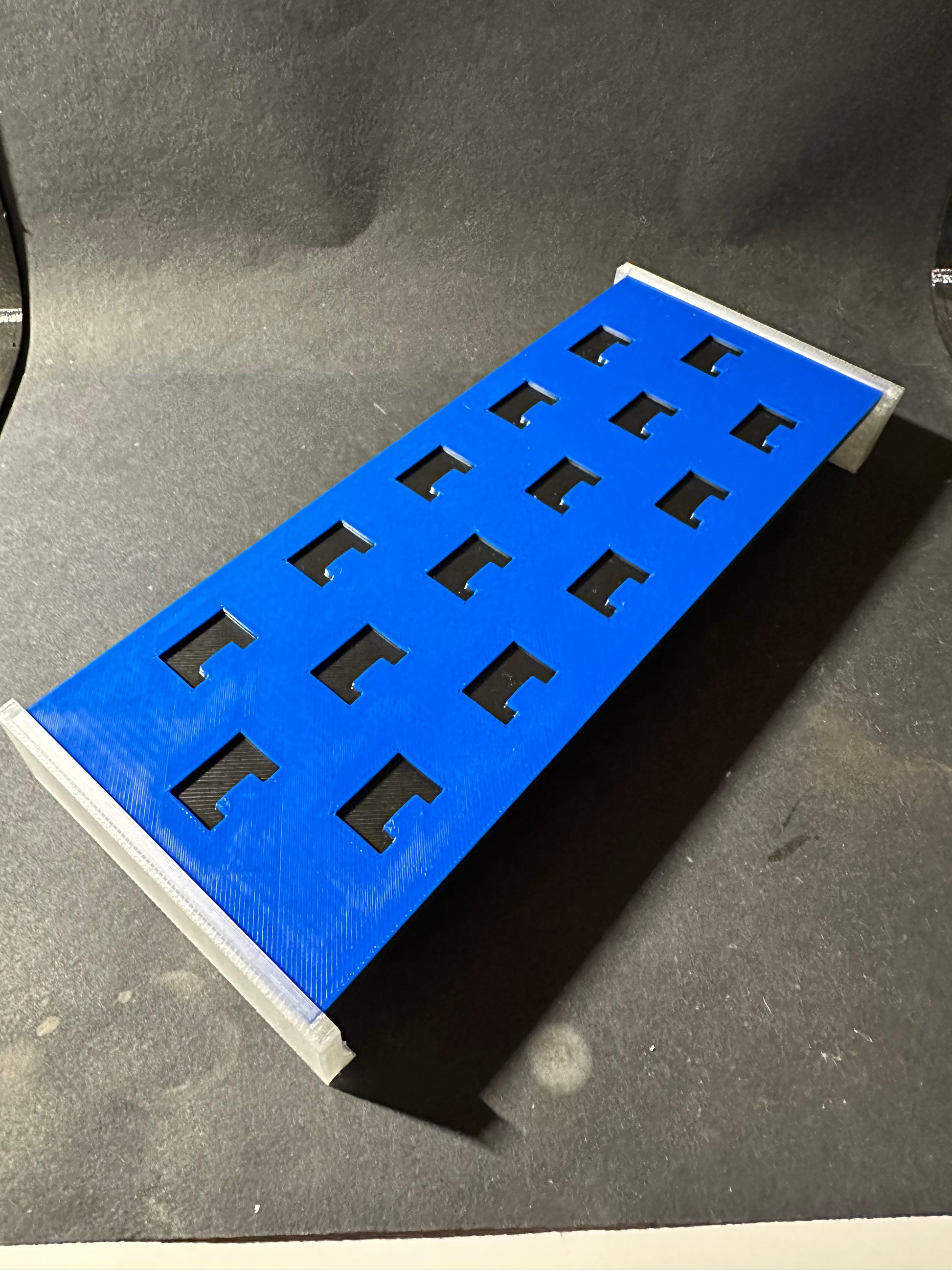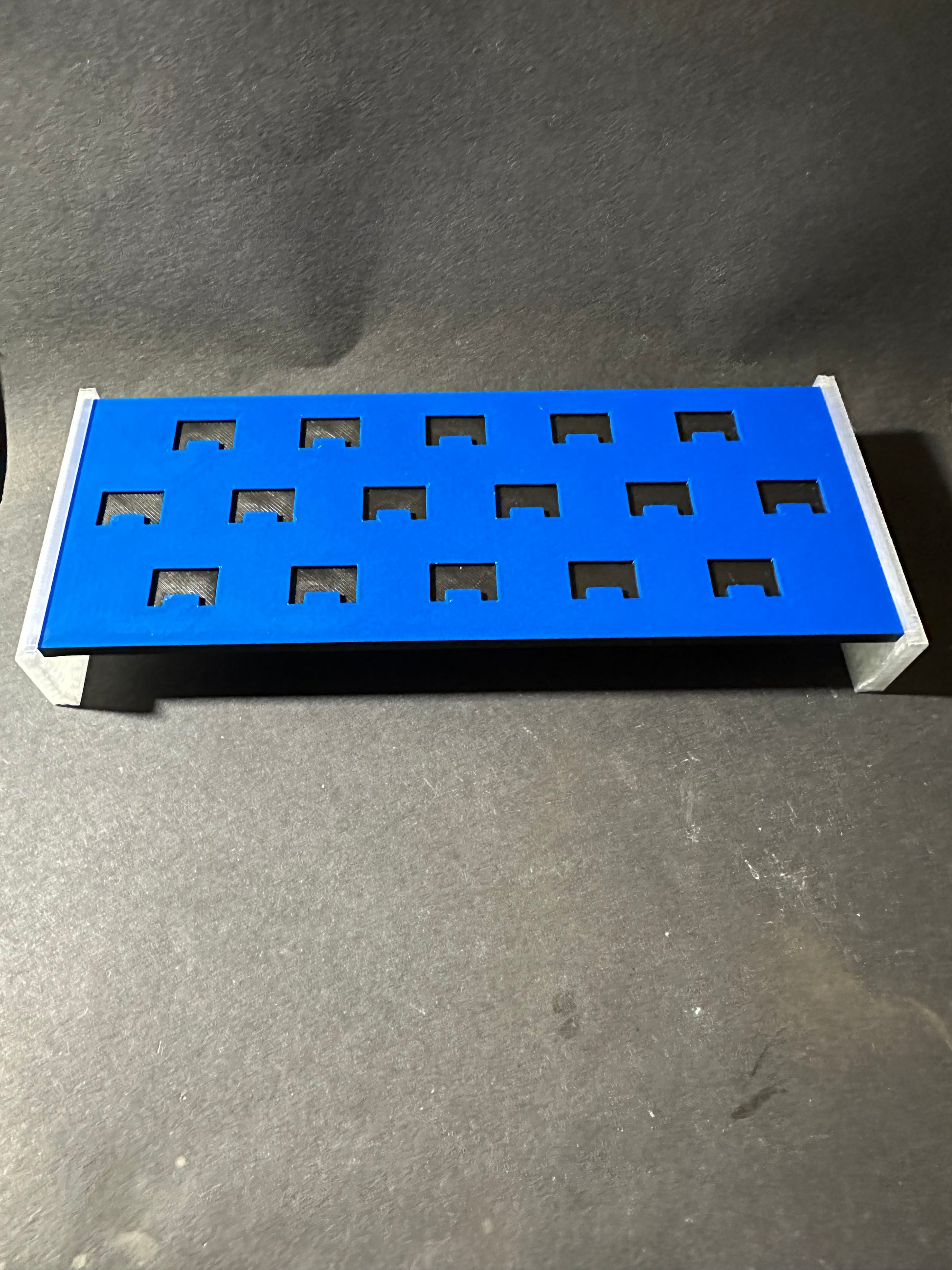There are enough cut outs for 16 coin stands across 3 rows. 5x6x5