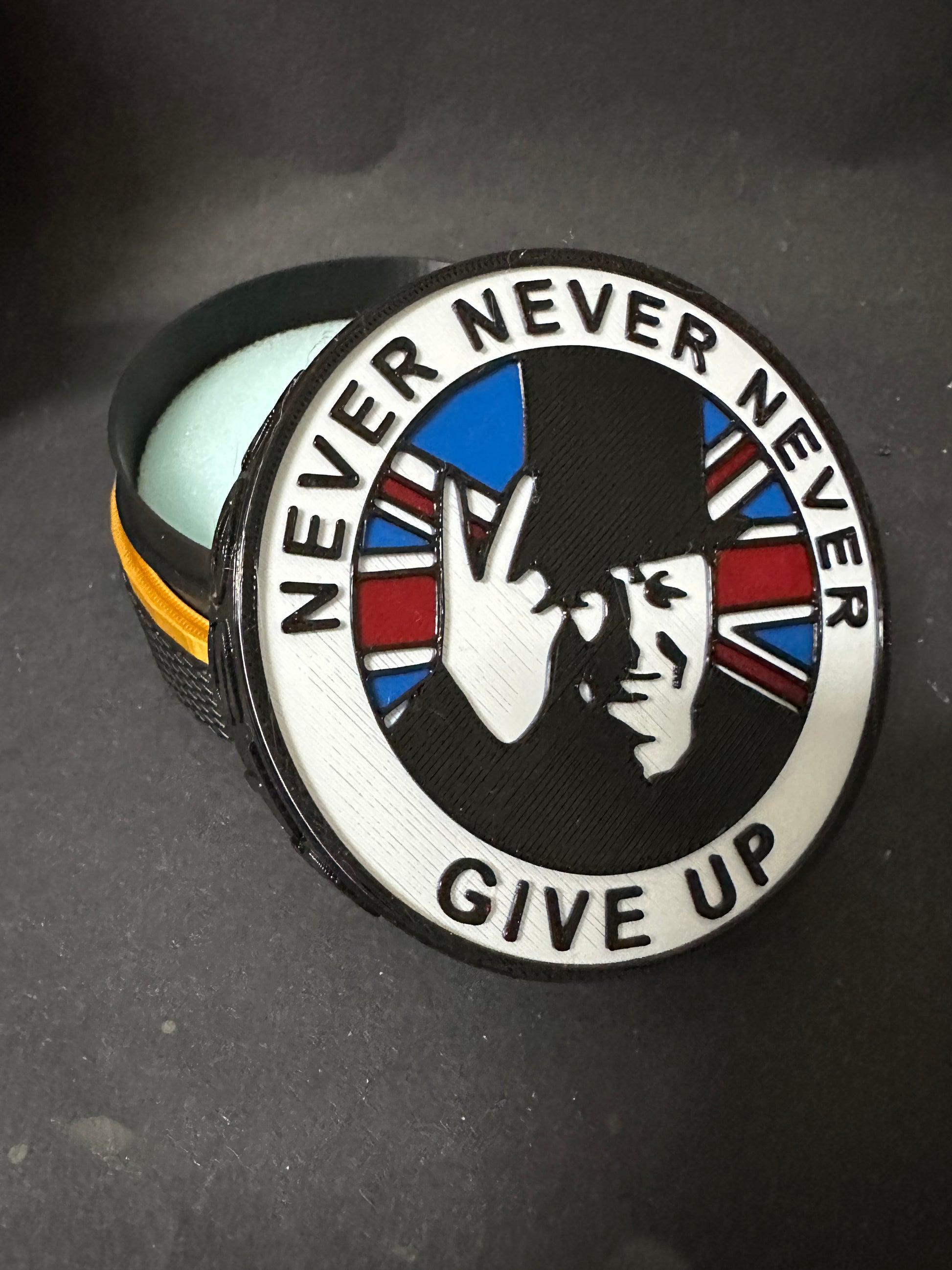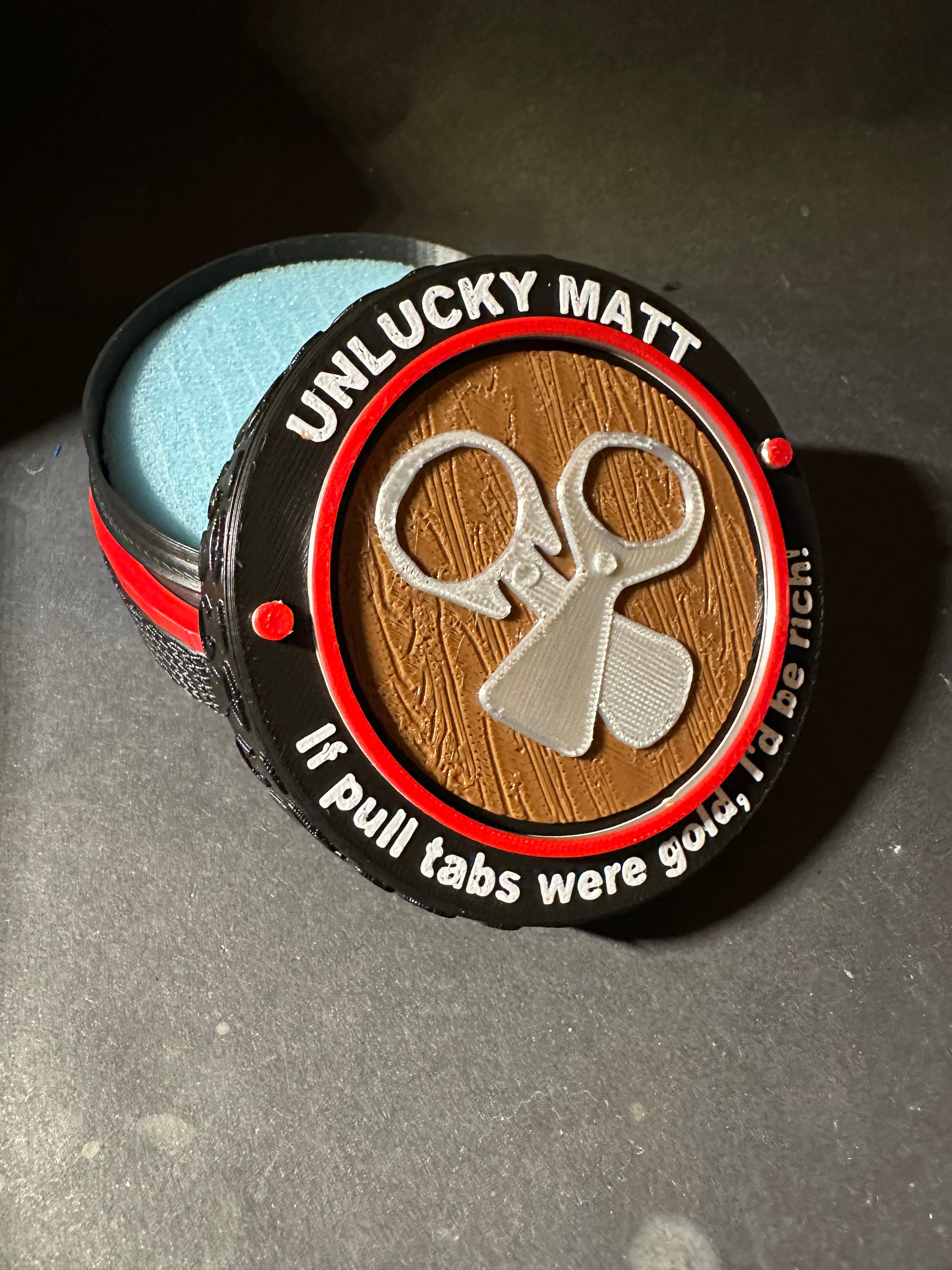 A custom design can be added to the top of your coin case. Message on my communications channel to discuss designs and colours.