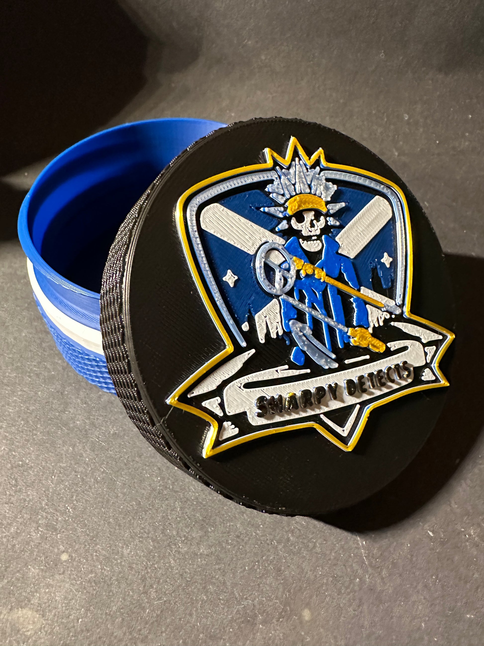 A custom design can be added to the top of your coin case. Message on my communications channel to discuss designs and colours.