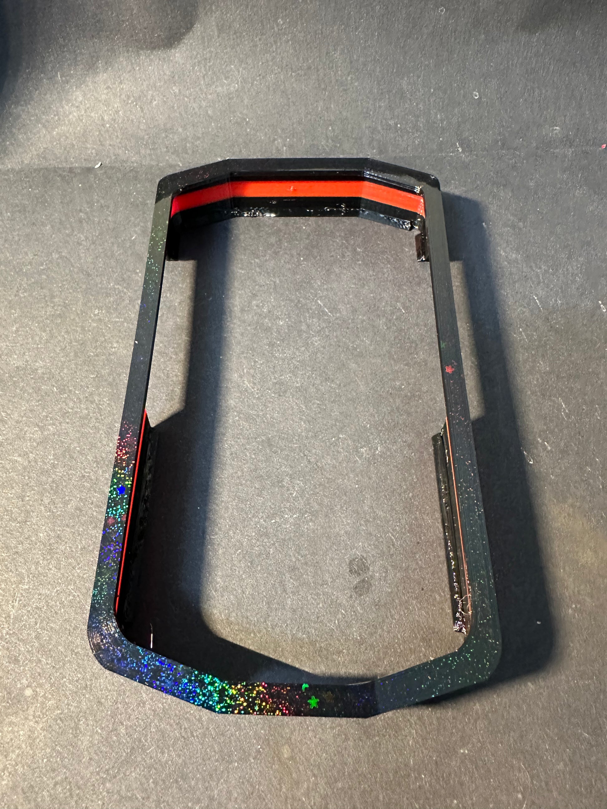 Can come in 2 tone or 1 colour with a holographic top or a textured top.