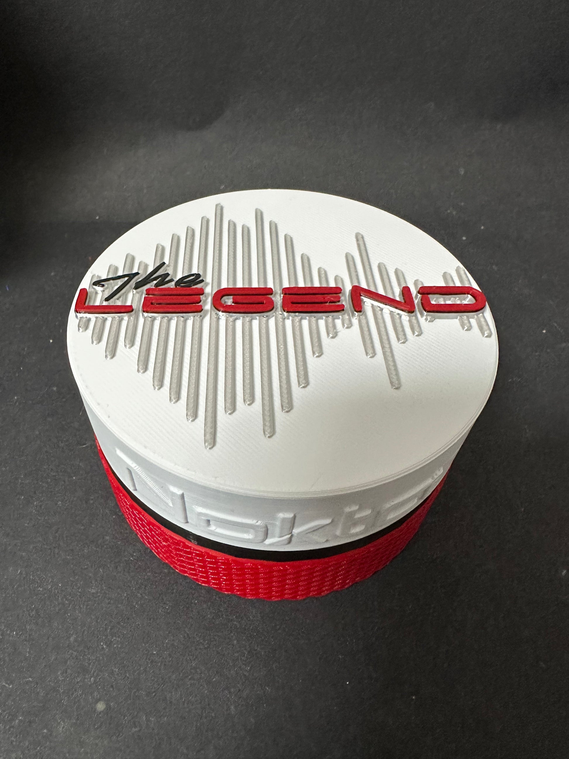 Nokta Legend coin case with a cross cross design on the bottom half and “Nokta” around the top half.