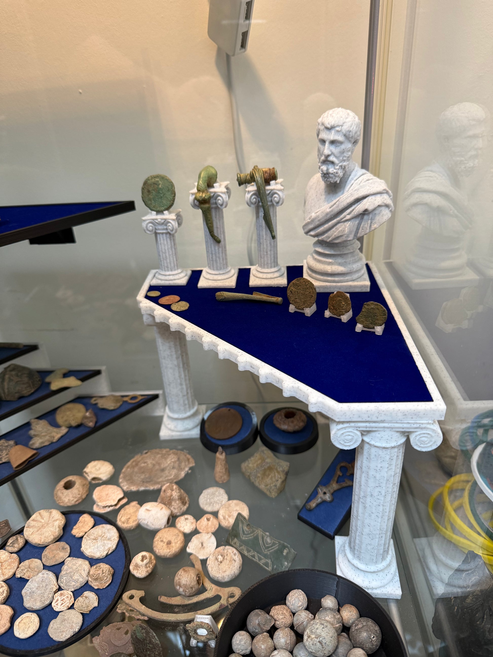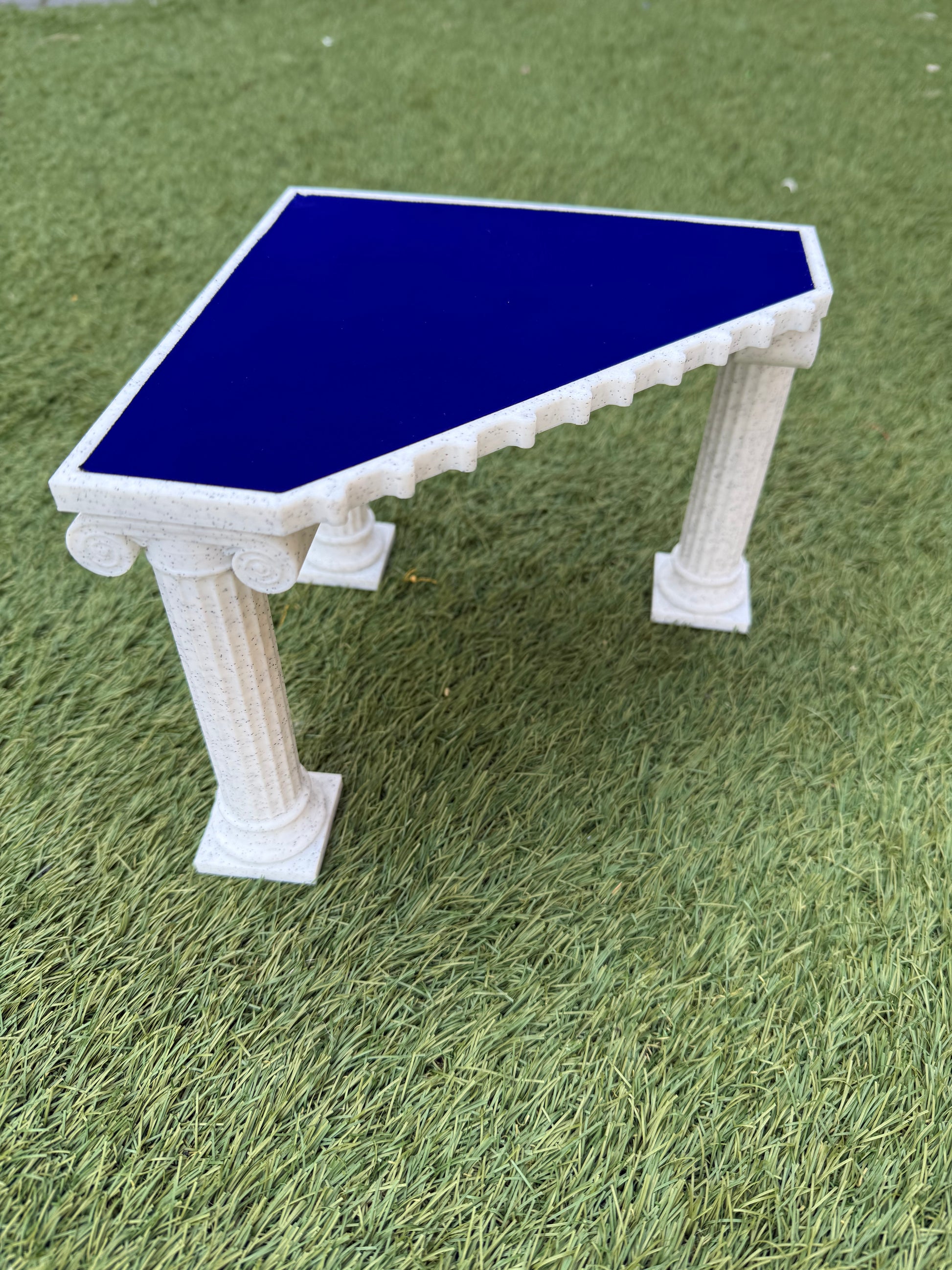 Printed in a marble effect plastic and finished with either a dark red, dark green or dark blue felt on the top.