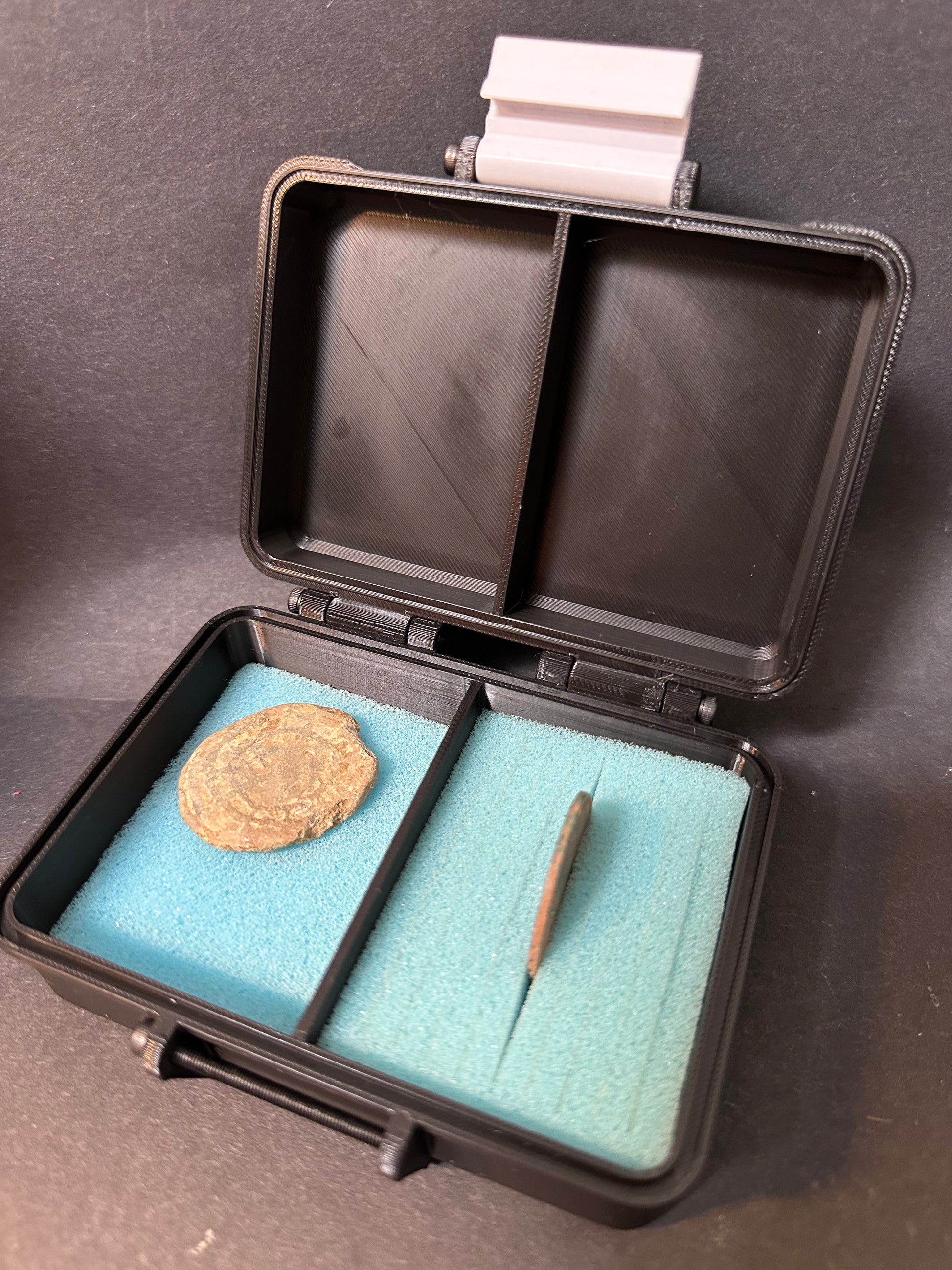It has a side for your artefacts and a side with slit foam to store your coins safely on edge. the ultimate compact storage solution for both artefacts and coins in one little box!