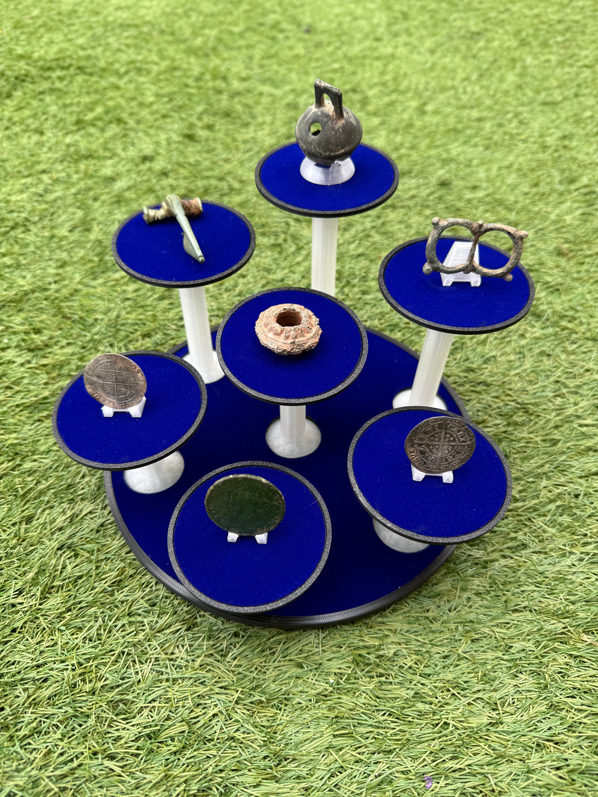 The base also has velvet finish as well as the trays in the columns. This means you can display finds both on the main tray and the top of the columns.