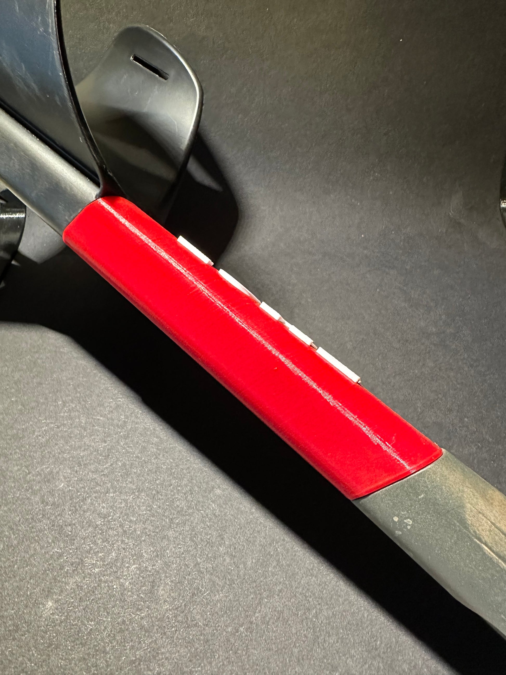 It can be printed in different colours and it slides onto the shaft between the arm rest and handle. It looks good and makes yours unique!
